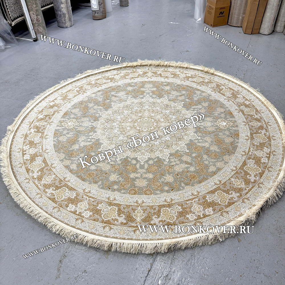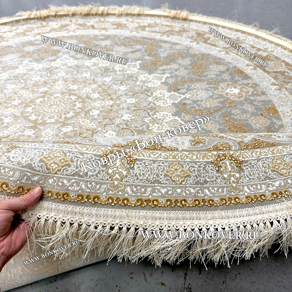Импозантный Круглый Ковер Для Гостиной Арт 30256 наполняет интерьер комнаты теплом и уютом, гармонично сочетает в себе изящество и красоту. Он изготовлен из высококачественного сырья, комфортный и долговечный.