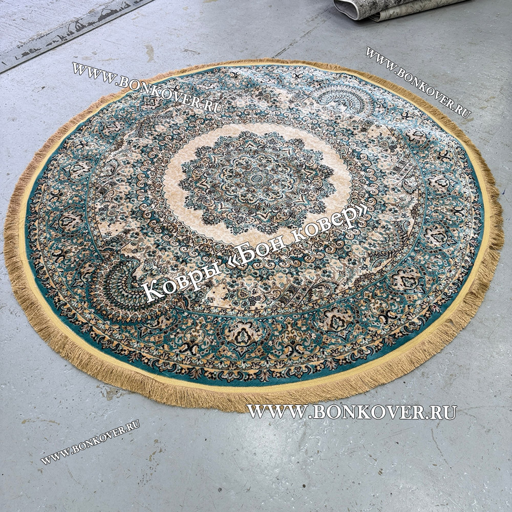 Восточный Ковер Для Гостиной Медальон Дизайн 28747 круг станет привлекательным дополнением интерьера, оформленного в современном или классическом стиле. Мягкое, но прочное, ковровое изделие обеспечивает тепло- и шумоизоляцию, отличается длительным сроком эксплуатации, надежностью, экологичностью и высокой износостойкостью, является отличной защитой от повышенной влажности в помещении и утеплителем для холодного пола. Благодаря качеству материалов, ковер не деформируется, сохраняет форму под тяжестью предметов мебели. За его поверхностью легко ухаживать.